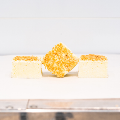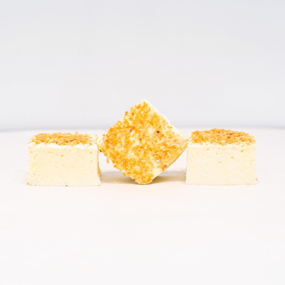 המרשמלו שלנו נוצר באהבה תוך שימוש בטכניקות קלאסיות, וכתוצאה מכך מתקבל מרקם דמוי ענן שמעביר אותך לבקתה על חוף הים בכל ביס. כל מרשמלו מציע הרמוניה מושלמת של אננס מתוק, קוקוס שמנת ולחש של טעם רום, יוצר תחושת טעם שהיא אקזוטית ומנחמת כאחד